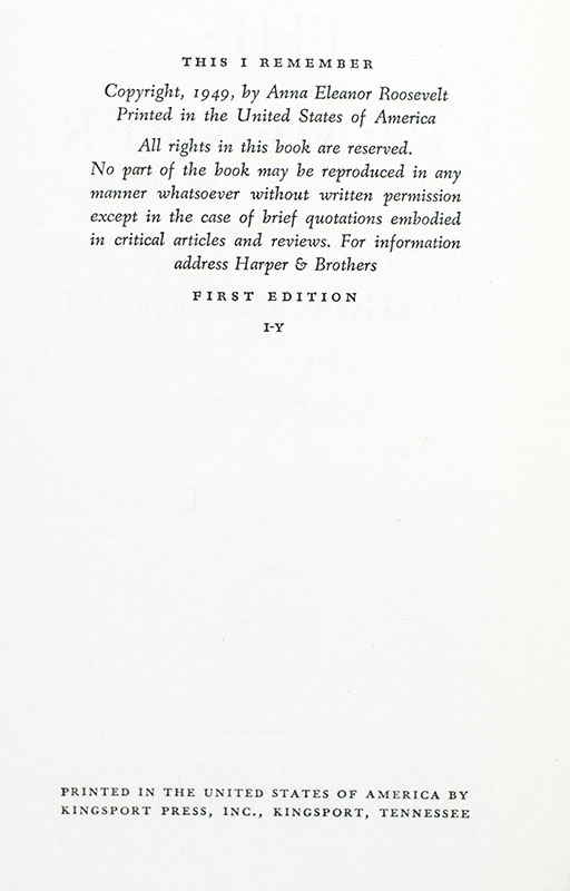 "The future belongs to those who believe in the beauty of their dreams": First Edition of Eleanor Roosevelts This I Remember; Signed By Her