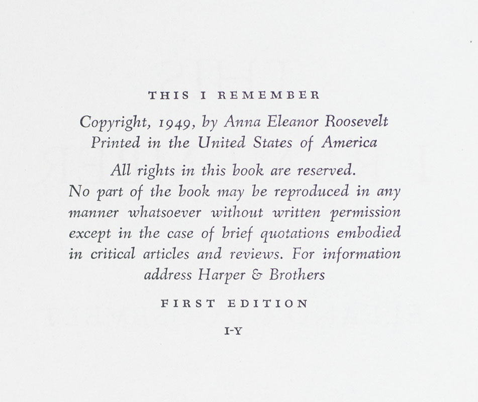 First Edition of Eleanor Roosevelt’s This I Remember; Signed By Her