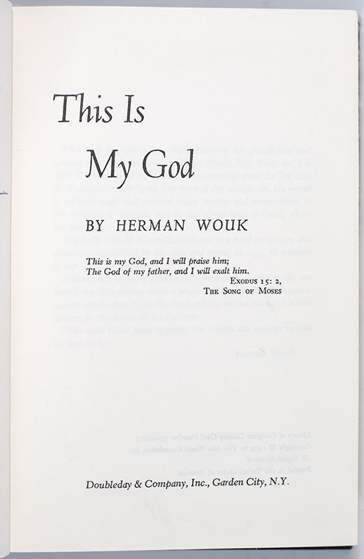 First Edition of Herman Wouk's This is My God; Warmly Inscribed by Him