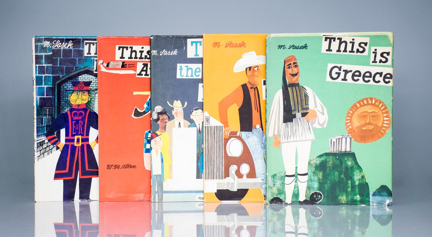 First editions of thirteen volumes of Sasek’s This Is... series. Quarto, 13 volumes. Includes: This Is New York; This Is Rome; This Is Edinburgh; This Is Venice; This Is San Francisco; This Is Israel; This Is Cape Kennedy; This Is Hong Kong; This Is Greece; This Is Texas; This Is the United Nations; This Is Australia; This Is Historic Britain. Each are near fine to fine in very good to near fine dust jackets. A nice group of first editions.