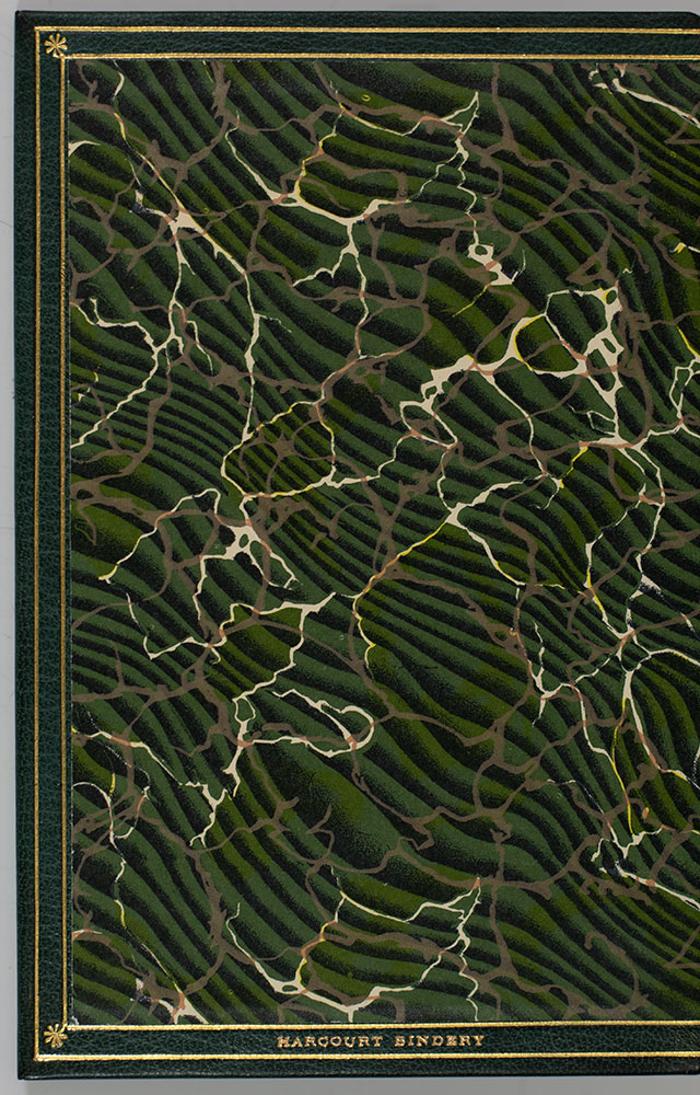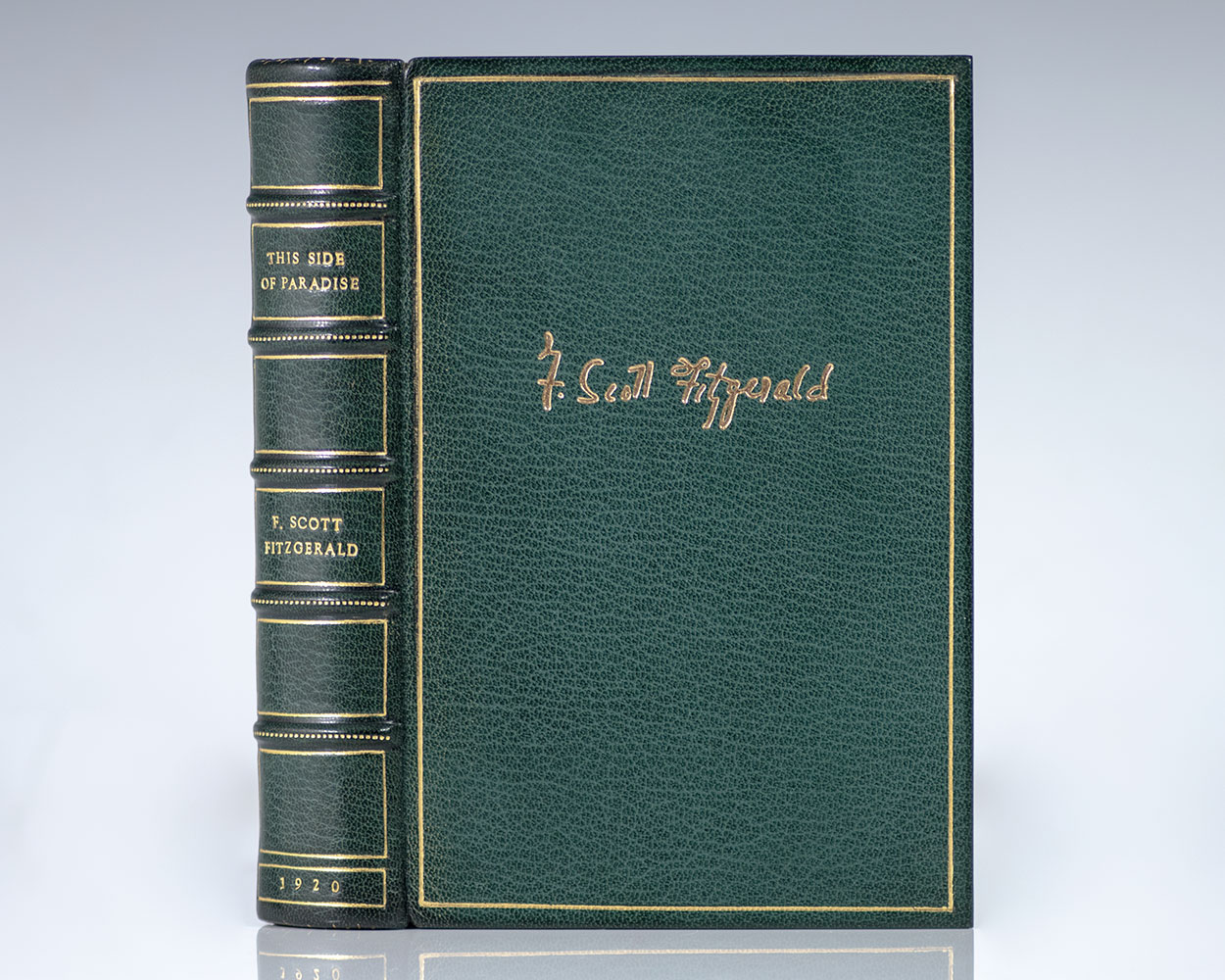 First edition, early printing of the author's first novel. Octavo, bound by full green morocco by the Harcourt Bindery, gilt titles to the spine, raised bands, gilt ruled to the front and rear panels, inner dentelles, marbled endpapers, twin rule to turn ins, marbled endpapers, all edges gilt. F. Scott Fitzgerald signature on the front panel of each volume. In fine condition.