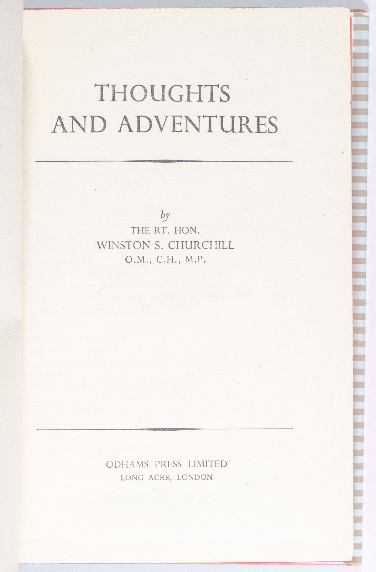 A collection of Churchill's magazine and newspaper journalism written in the same lighter, informal style as My Early Life, the success of Thoughts and Adventures came as a considerable surprise to the publisher. Published on 10 November 1932 in a run of 4,000, three additional printings of 1,000 were required in the same month, two of them before publication, Butterworth writing to Churchill: "We are truly delighted at this success which confounds the Jonahs of the Bookselling trade To keep pace with the increasing demand, we had to get both printers and binders to work overtime. The sheets were delivered by passenger train, and the cases were made by the binders in advance" (Quoted in Cohen).