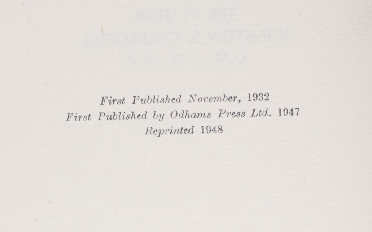 Odhams Press edition of the second volume of Churchill's autobiographical writings. Octavo, original cloth. Near fine in a near fine dust jacket.