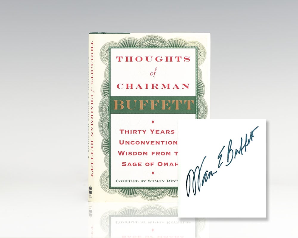 First edition of this compilation of quotations by the world's most famous and successful investor. Small octavo, original half cloth. Boldly signed by Warren Buffett on the front free endpaper. Fine in a fine dust jacket.