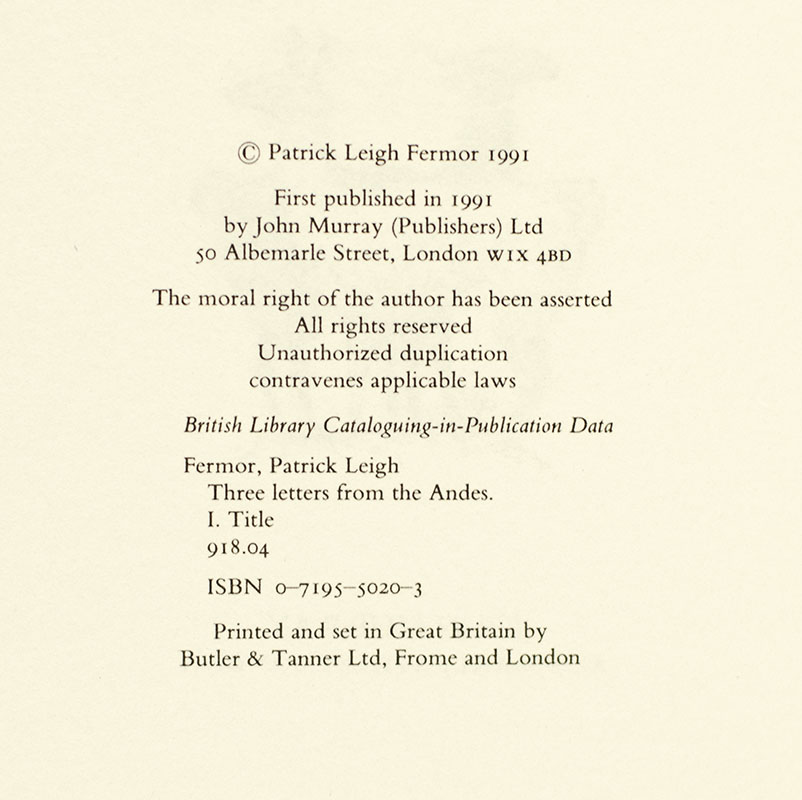 "We were sorry to leave this beautiful place": First British Edition of Patrick Leigh Fermor's Three Letters From The Andes