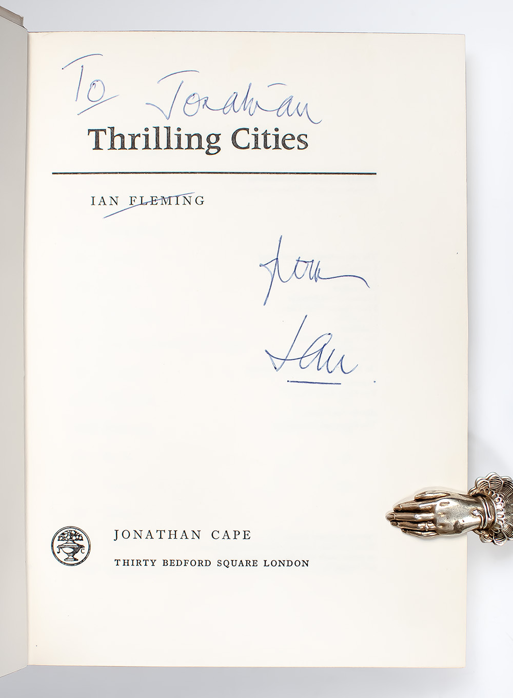 “SERVE ON HOT BUTTERED TOAST… WITH PINK CHAMPAGNE”: FIRST EDITION OF THRILLING CITIES; inscribed by Ian Fleming
