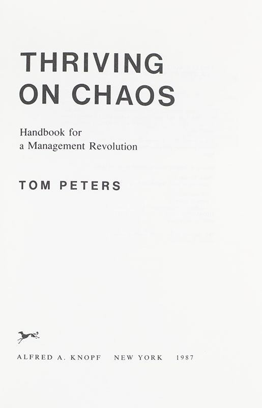 First Edition of Tom Peters' Thriving on Chaos; inscribed by him