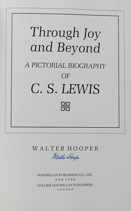 First Edition of Through Joy and Beyond: A Pictorial Biography of C.S. Lewis; Signed by Walter Hooper