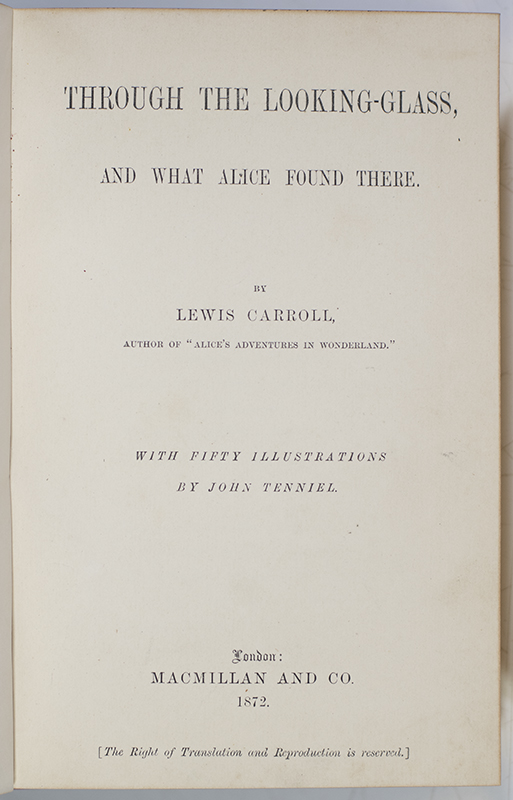 "If I had a world of my own, everything would be nonsense. Nothing would be what it is, because everything would be what it isn't": First Edition of Lewis Carroll's Through the Looking-Glass, And What Alice Found