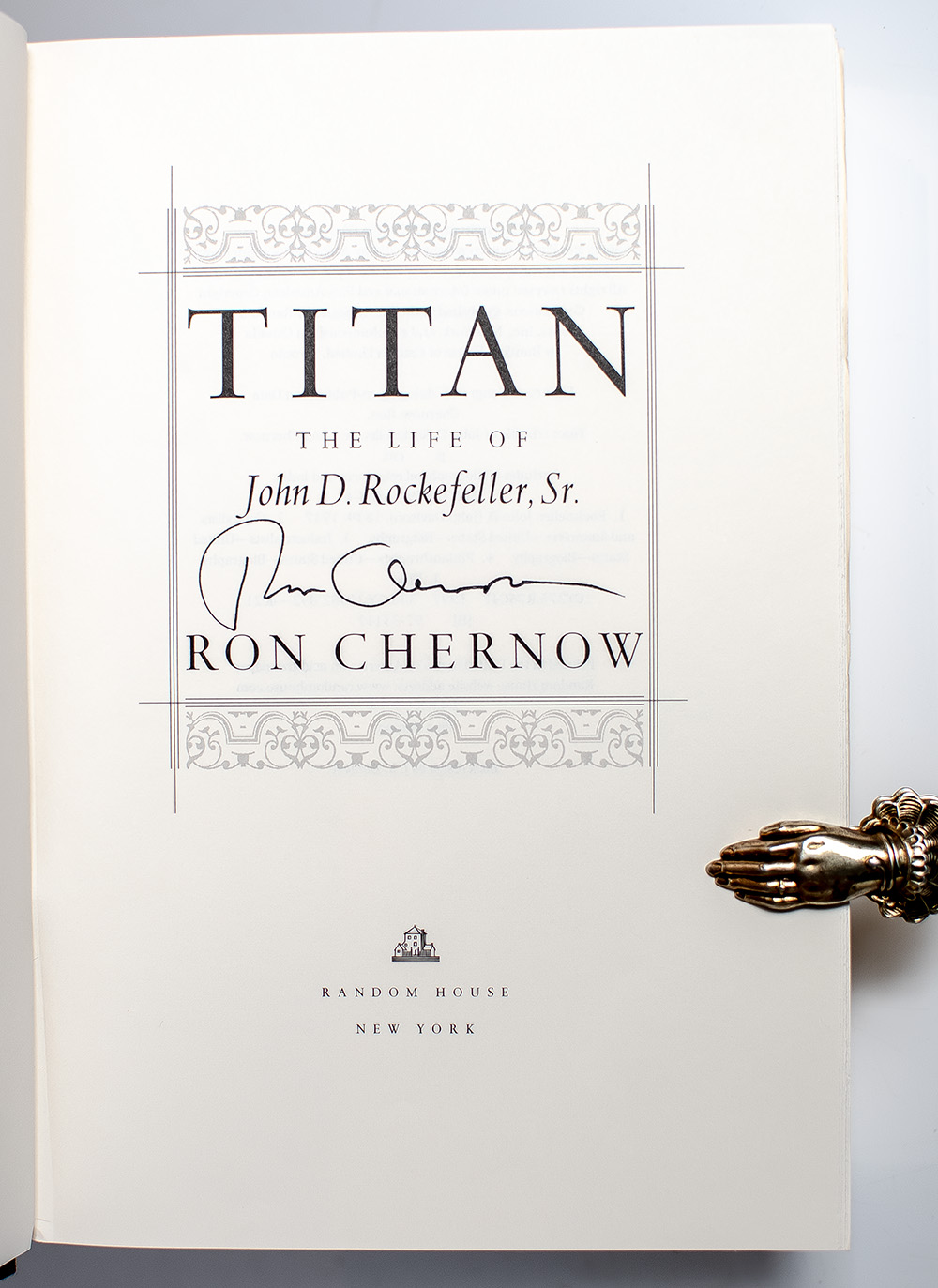“Success comes from keeping the ears open and the mouth closed” and “A man of words and not of deeds is like a garden full of weeds": First Edition of Titan: The Life of John D. Rockefeller; Signed by Ron Chernow