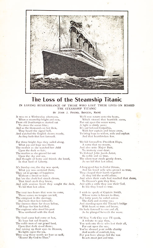 "Out of England's harbor, sailed a vessel proud on day, she was bound for New York City, so many miles away": Exceptionally Rare Collection of First Editions, Booklets, and Sheet Music dedicated to the ill-fated passengers of the RMS Titanic