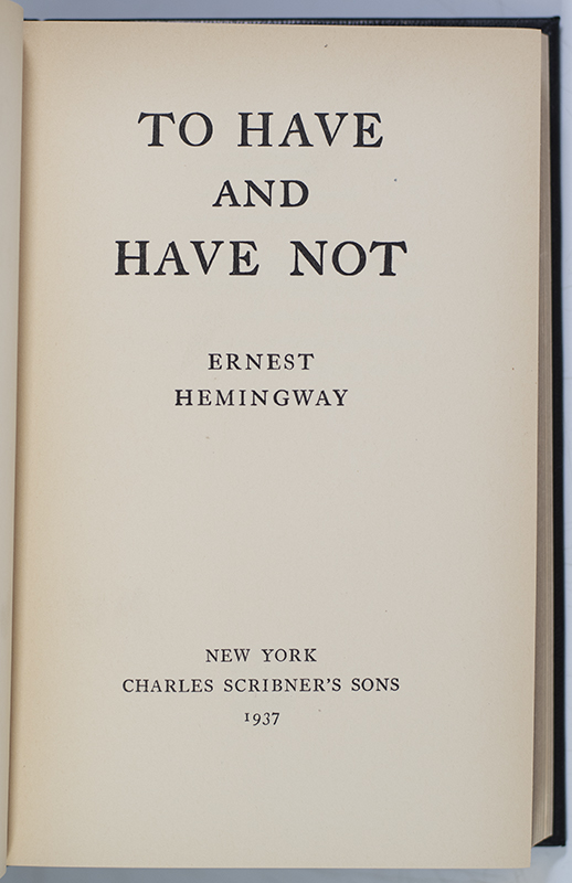 “Listen," I told him. "Don't be so tough so early in the morning. I'm sure you've cut plenty of people's throats. I haven't even had my coffee yet": First Edition of Ernest Hemingway's To Have and Have Not; Finely Bound by the Harcourt Bindery