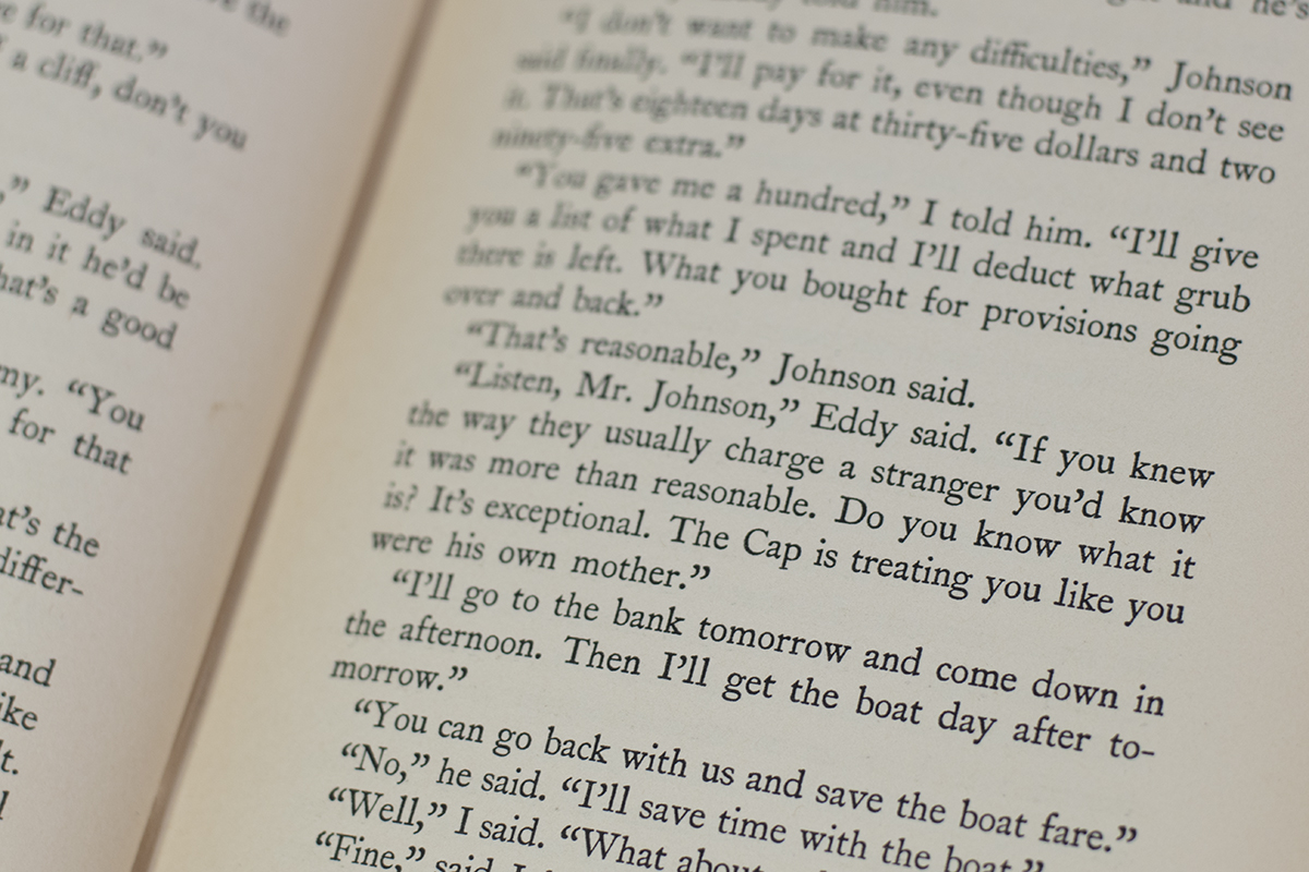 To Have and Have Not was Hemingway’s first since A Farewell to Arms was published eight years earlier, follows the life and adventures of Harry Morgan from rum-running to revolution. Brimming with criticism directed at American capitalism and the bureaucracy of the Roosevelt administration, the novel explores social circumstances and situations in Key West, “that paradise of the ‘haves’ and purgatory of the ‘have nots.” “In To Have and Have Not, Hemingway for the first time showed an interest in a possible solution of social problems through collective action” (Hart, 327). Basis for the Howard Hawks film co-scripted by William Faulkner and featuring Humphrey Bogart and Lauren Bacall.