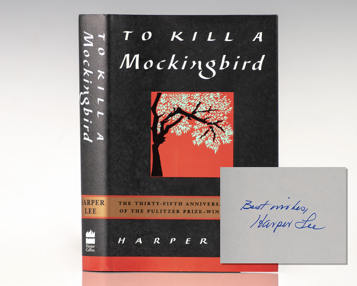 First edition, early printing of the 35th Anniversary edition of the author’s Pulitzer Prize-winning novel. Octavo, original half cloth. Boldly signed by "Best wishes, Harper Lee" on the half-title page. Fine in a fine dust jacket. Jacket design by Suzanne Noli.