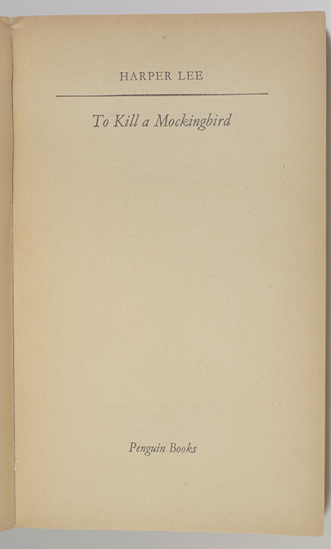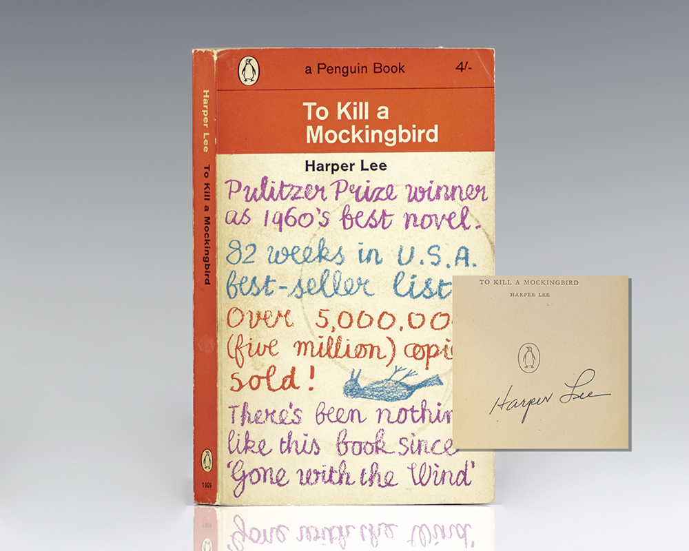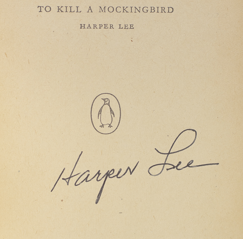 First British paper edition of the author’s Pulitzer Prize-winning novel. Octavo, original illustrated wrappers. Boldly signed by Harper Lee on the half-title page. In near fine condition. Uncommon, especially signed.
