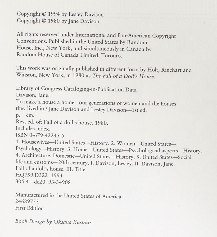 To Make a House a Home: Four Generations of American Women and the Houses They Lived In.