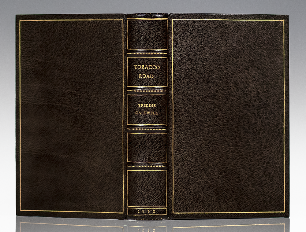 First edition of Caldwell's classic work. Octavo, bound in full morocco by the Harcourt Bindery, gilt titles and tooling to the spine in six compartments within raised gilt bands, gilt ruling to the front and rear panels, gilt inner dentelles stamp-signed by the Harcourt Bindery, marbled endpapers, all edges gilt. Boldly signed by Erskine Caldwell on a page bound in. In fine condition.