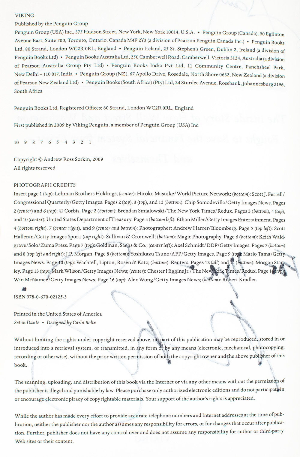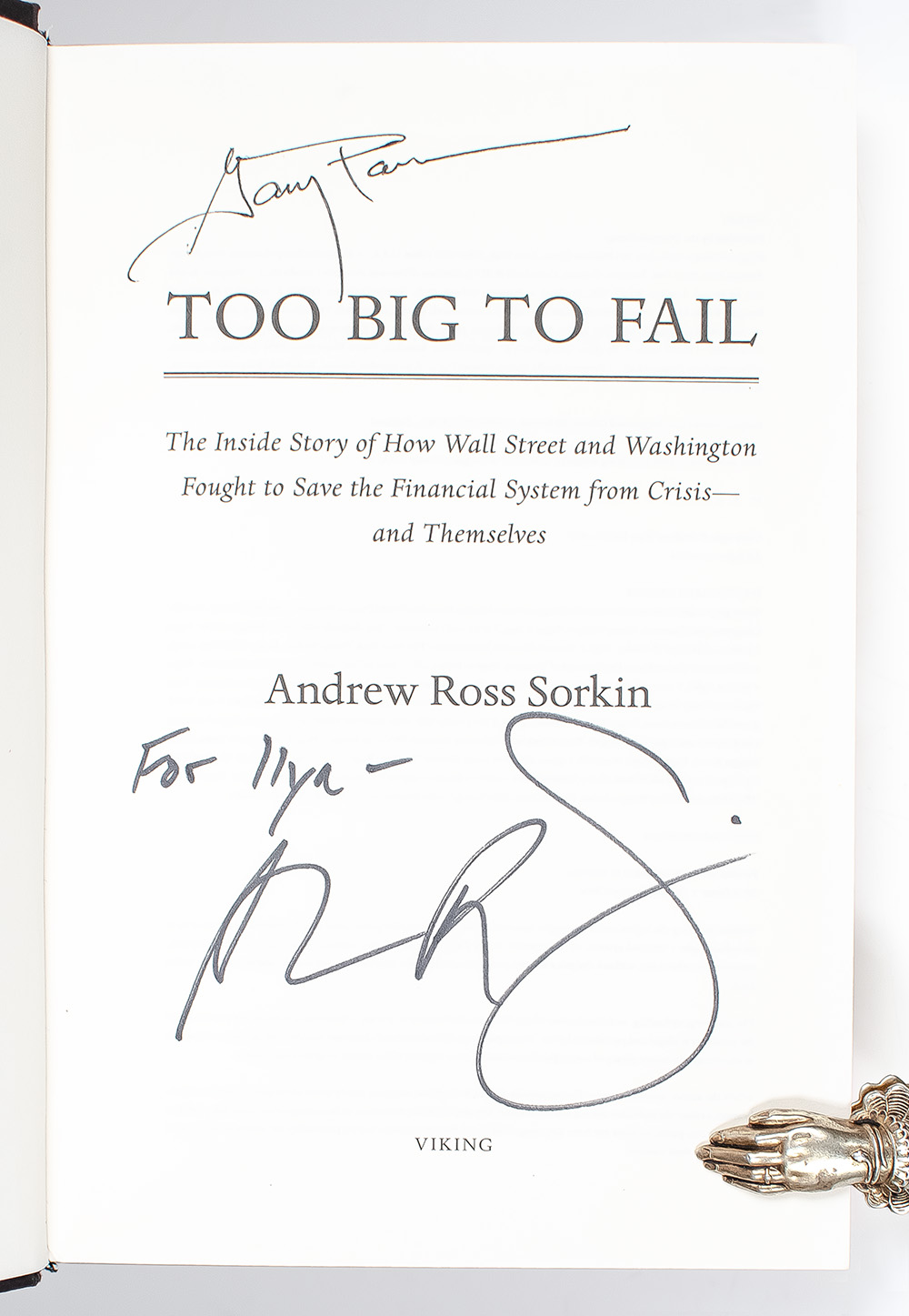 “There are no atheists in foxholes or ideologues in a financial crisis": First Edition of Too Big To Fail; Inscribed by Andrew Ross Sorkin and Gary Parr