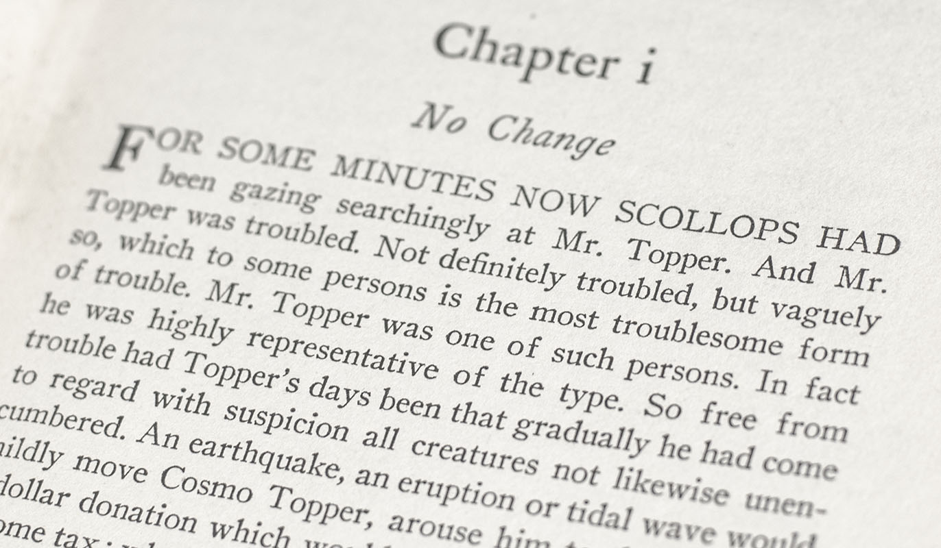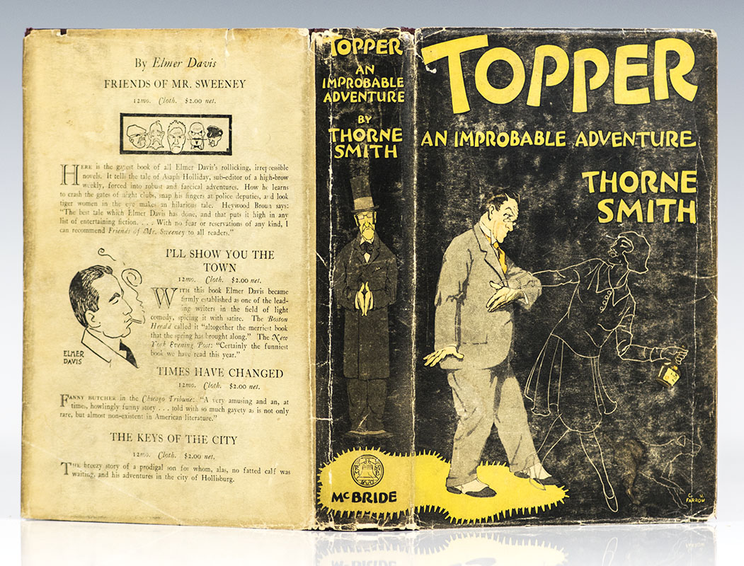 Thorne Smith's best known work, Topper: An Improbable Adventure centers on the misadventures of an ordinary banker and two ghosts, one of whom he falls in love with. The racy comic fantasy novel sold millions of copies in the 1930s and was equally as popular in paperbacks in the 1950s. The story was adapted into a 1937 film starring Cary Grant, Contance Bennett and Roland Young. Two filmed sequels followed: Topper Takes a Trip, in 1939, and Topper Returns, in 1941. Two filmed sequels followed: Topper Takes a Trip, in 1939, and Topper Returns, in 1941.