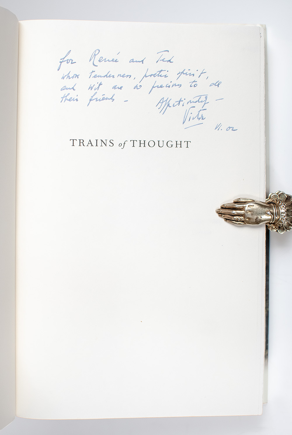 First edition of this "beautifully cadenced work of art―it will remind some readers of Nabokov's classic Speak, Memory" (Joyce Carol Oates). Octavo, original half cloth, illustrated. Presentation copy, inscribed by the author on the half-title page, " For Renee and Ted whose tenderness, poetic spirit, and wit are so precious to all their friends - Affectionately - Victor 11.02." The recipient, Theodore Weiss was a poet, professor and editor along with his wife Renee of the Quarterly Review of Poetry. Fine in a fine dust jacket with Weiss' signature to the front free endpaper. Jacket design by Robin Locke Monda.