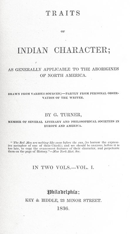 First Edition of George Turner's Traits of Indian Character; Finely Bound
