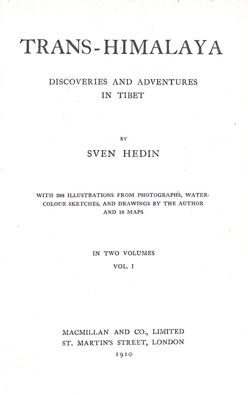 Sven Hedin's Trans-Himalaya. Discoveries and Adventures in Tibet; From the Library of Explorer and Adventurer Steve Fossett