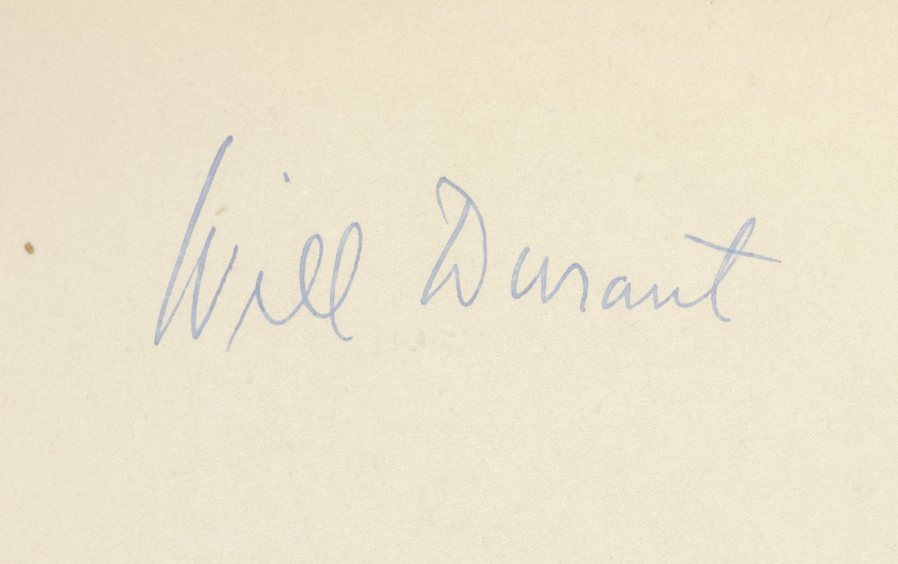 First edition of this classic work. Octavo, original cloth. Signed by Will Durant on the front free endpaper. Near fine in a very good dust jacket.