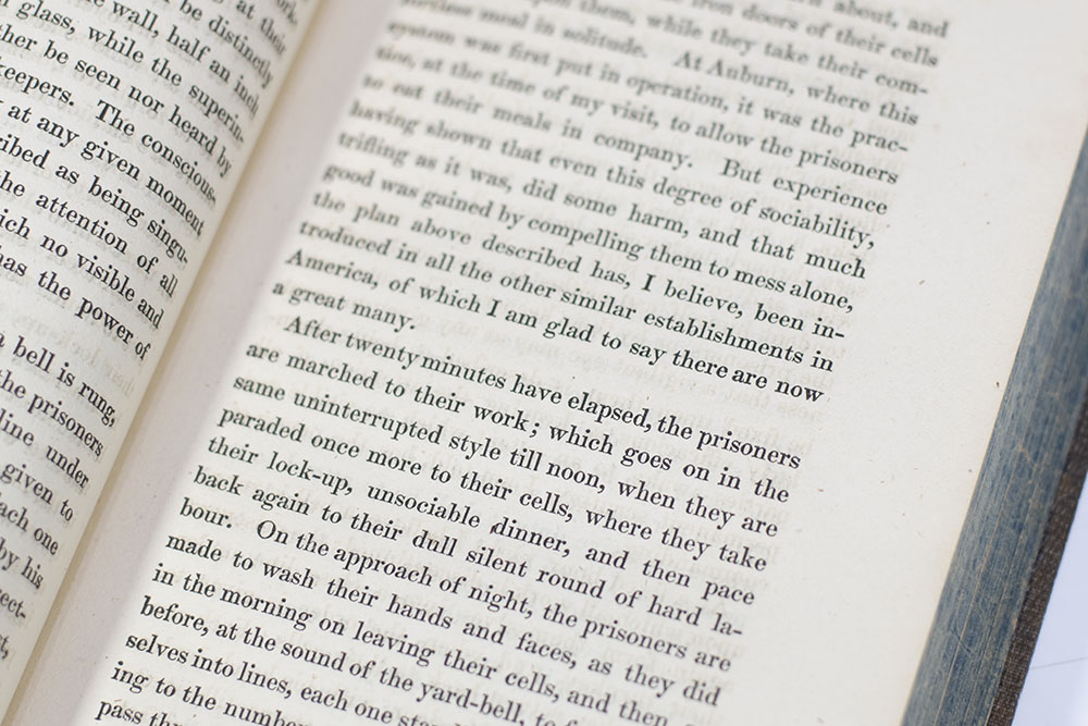 First edition of this important work. Octavo, 3 volumes, bound in full morocco, gilt titles and tooling to the spine, volume one with the foldout map of the United States as far west as the Arkansas Territory and a part of Texas. Volume three contains a foldout chart of statistical data on the population and size each state, and on the United States government's finances. Association copy, inscribed by the author on the half-title page of volume one, "Lady Holland with the author's compliments." The recipient, Lady Holland was an English political hostess and the wife of Whig politician Henry Vassall-Fox, 3rd Baron Holland. With her husband, and after his death, she hosted political and literary gatherings at their home, Holland House. In near fine condition. Rare and desirable signed, this is the first example we have seen.