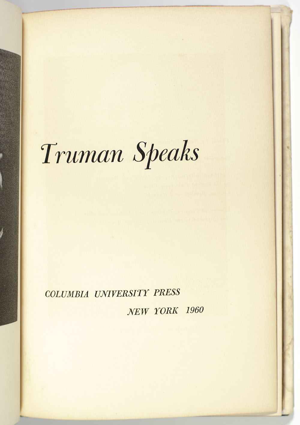"more poignant and human than Trumans official memoirs": First Edition of Truman Speaks; Signed by Harry Truman