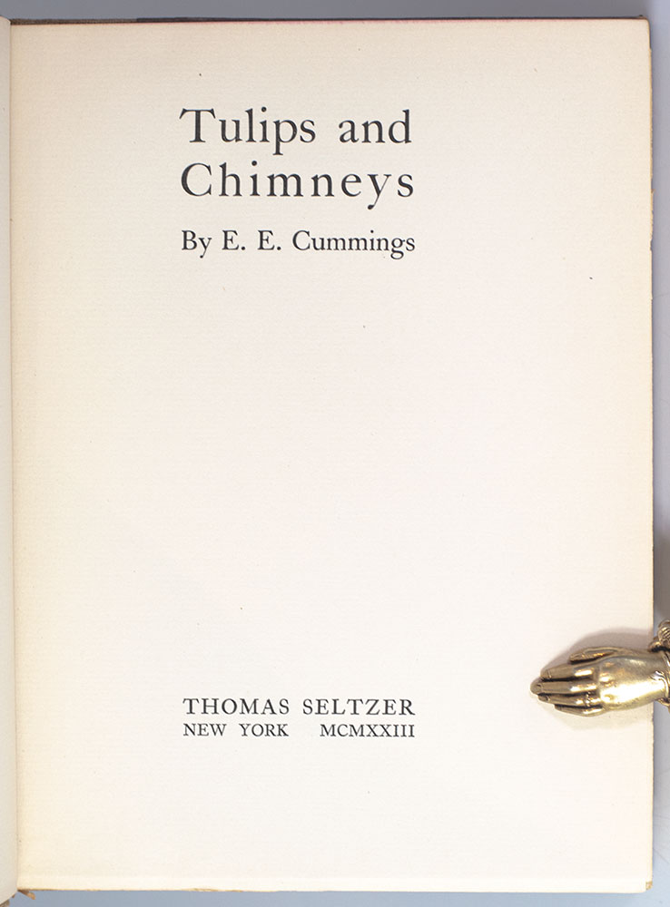 "Thou aged unreluctant earth who dost with quivering continual thighs invite the thrilling rain the slender paramour": First edition of E. E. Cummings' Tulips and Chimneys