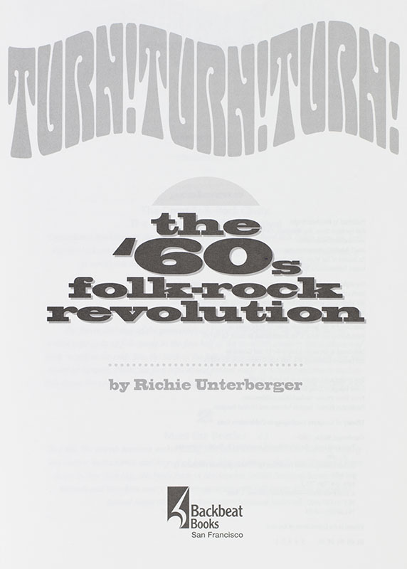 First edition of Richie Unterberger's Turn! Turn! Turn! the '60s Folk-Rock Revolution; inscribed by him