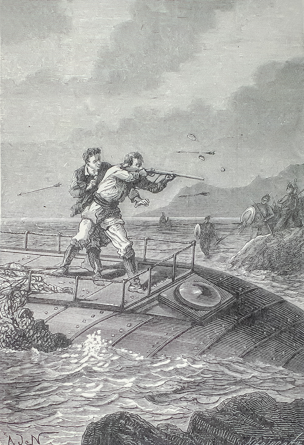 The famous tale of Captain Nemo and his submarine the Nautilus, “Twenty Thousand Leagues owed much to the exploits of the huge experimental French submarine Le Plongeur and to the work of Verne’s friend Jacques-François Conseil, who developed a steam-driven submarine and whose surname Verne gave to Professor Arronax’s servant in the story” (Carpenter and Prichard, 557). Verne combined science and invention with fast-paced adventure. Some of Verne's fiction has also become fact: his submarine Nautilus predated the first successful power submarine by a quarter century, and his spaceship predicted the development a century later. The first all-electric submarine, built in 1886, was named Nautilus in honor of Verne's vessel. The first nuclear-powered submarine, launched in 1955, was named Nautilus, too. The film version was produced by Walt Disney in 1954 and directed by Richard Fleischer, won an Oscar for its special effects.