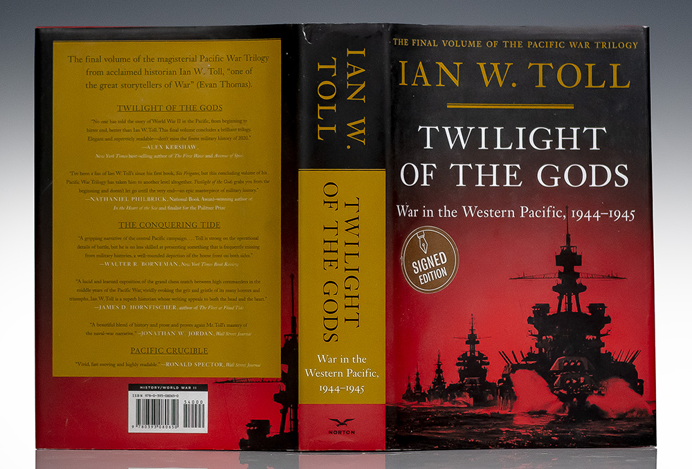 First edition of the final volume in the author's classic Pacific War trilogy. Octavo, original half cloth, illustrated with 32 unnumbered pages of black and white photographs. Boldly signed by Ian Toll on the second free endpaper. Fine in a near fine dust jacket.