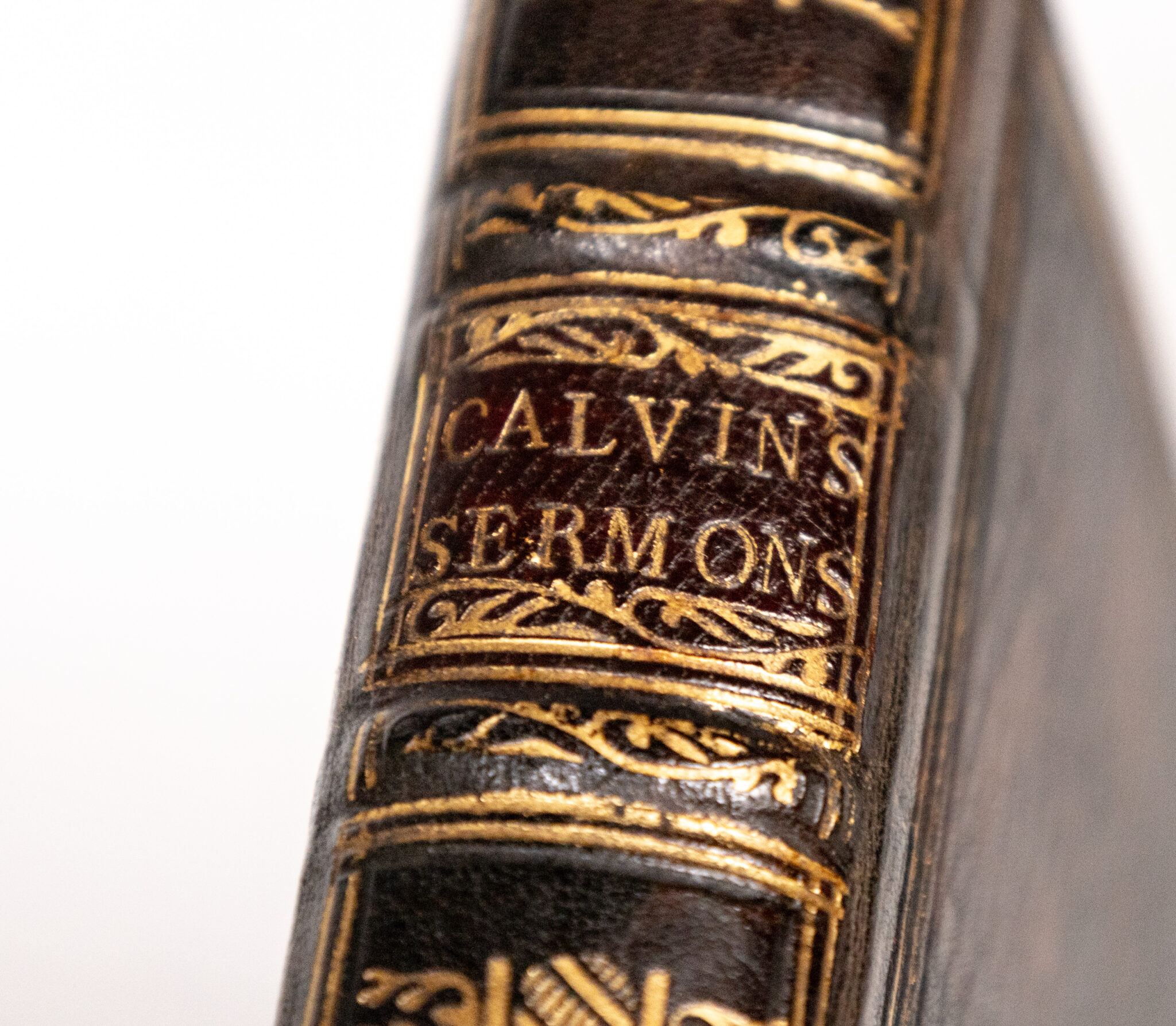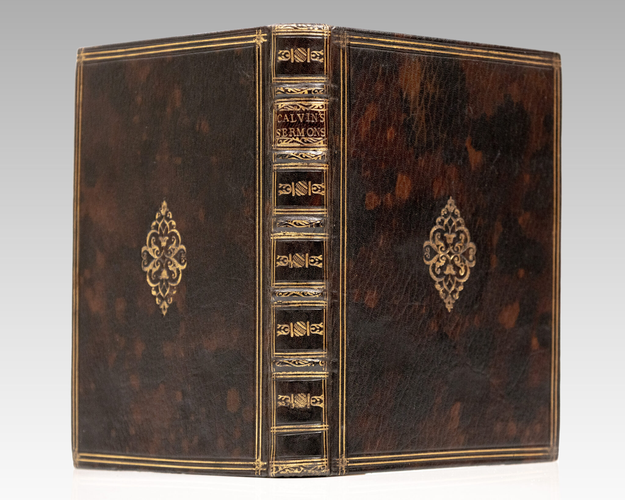 Scarce first edition in English of this collection of John Calvin's sermons. Octavo, bound in full levant morocco with gilt tooling to the spine in six compartments within raised gilt bands, morocco spine label lettered in gilt, double gilt ruling and central gilt arabesques to the front and rear panels, gilt turn-ins, wide typographical border to the title page, woodcut initials. In near fine condition. Scarce, ESTC locates 17 locations, with only eight in the United States and only one appearing at auction in the last 120 years.