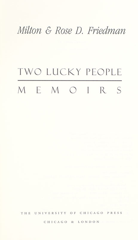First Edition of Two Lucky People; Signed by Milton and Rose Friedman