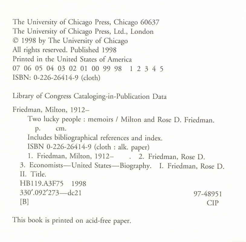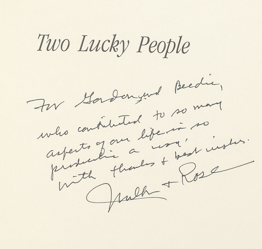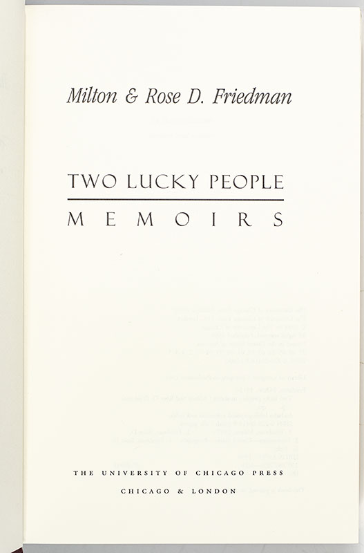 "Who contributed to so many aspects of our life in so productive a way": First Edition of Two Lucky People; Signed by Milton and Rose Friedman
