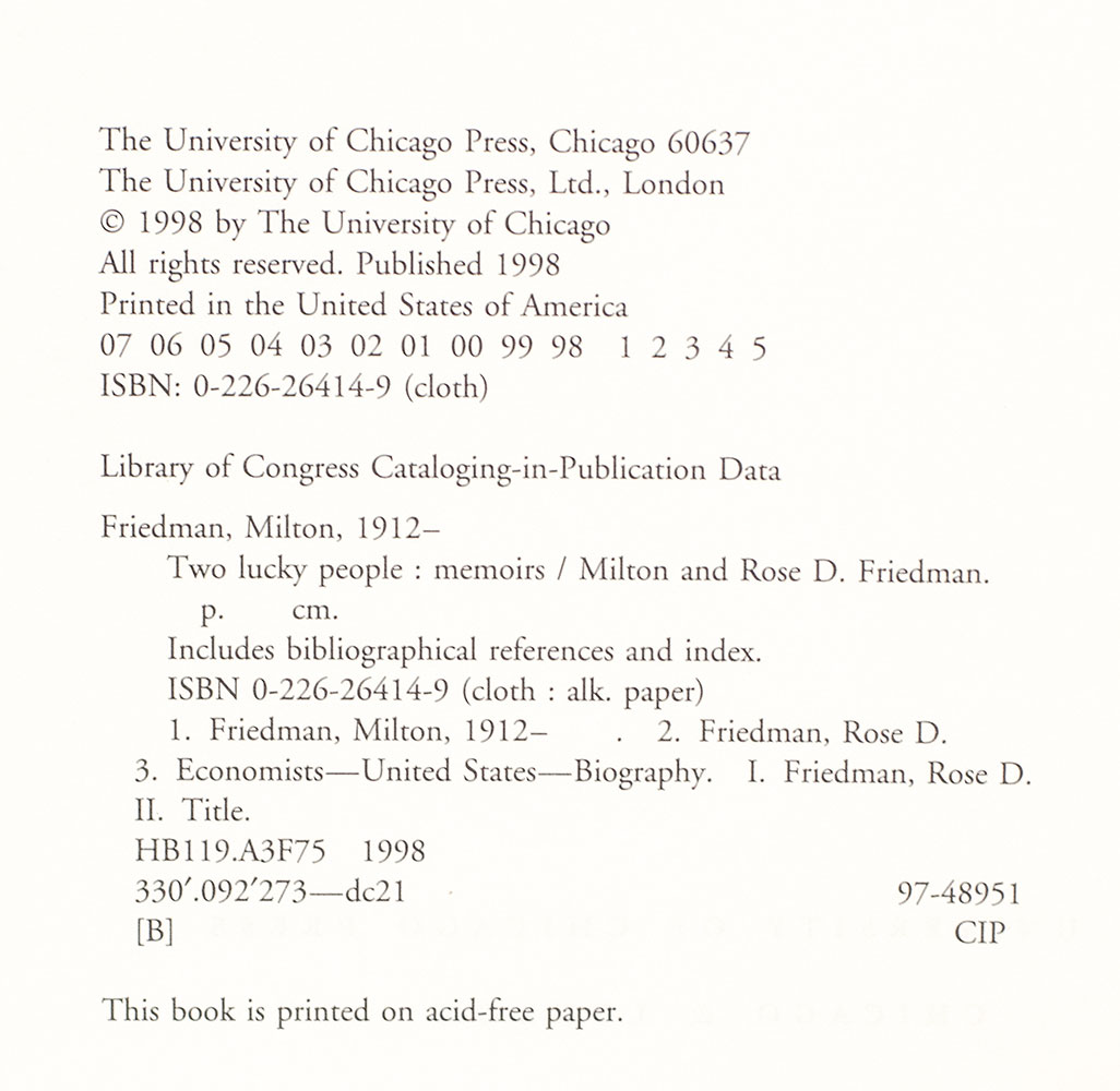 First Edition of Two Lucky People; Signed by Milton and Rose Friedman