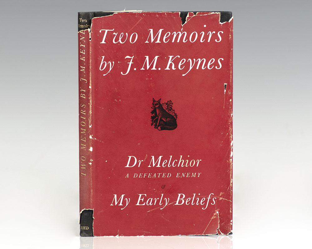 First edition of this memoir by the famed economist. Octavo, original cloth, frontispiece photograph of Keynes, Bertrand Russell and Lytton Strachey at Garsington. Introduction by David Garnett. Near fine in a very good dust jacket with some chips and wear. Uncommon in the original dust jacket.