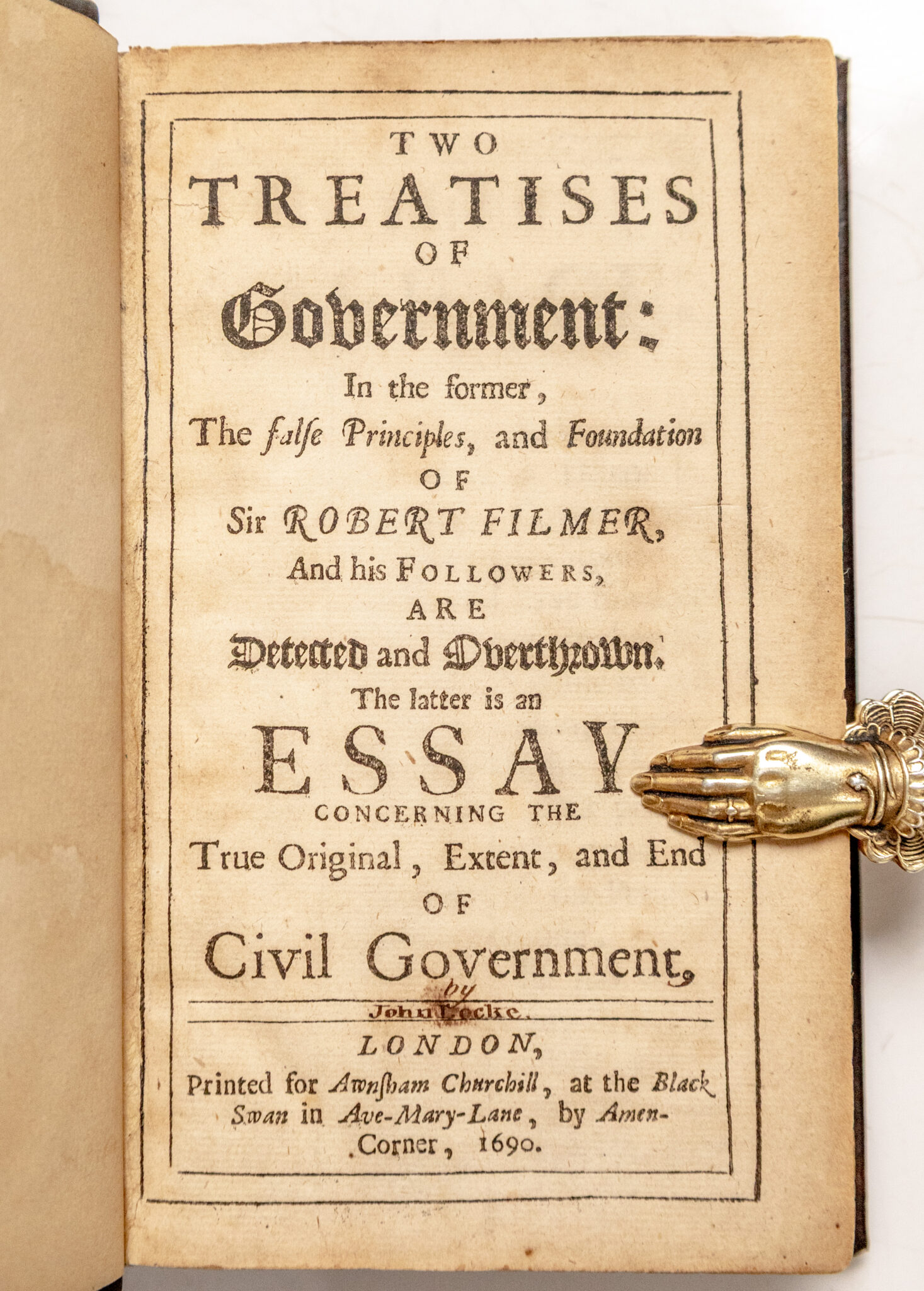 “A FORMATIVE INFLUENCE ON THE PRINCIPLES OF THE DECLARATION OF INDEPENDENCE AND OF THE EARLY STATE CONSTITUTIONS”: RARE FIRST EDITION OF LOCKE’S TWO TREATISES OF GOVERNMENT