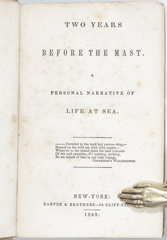 “He who dares to teach must never cease to learn": Rare First Edition, First Issue of Dana's Two Years Before the Mast: A Personal Narrative of Life at Sea