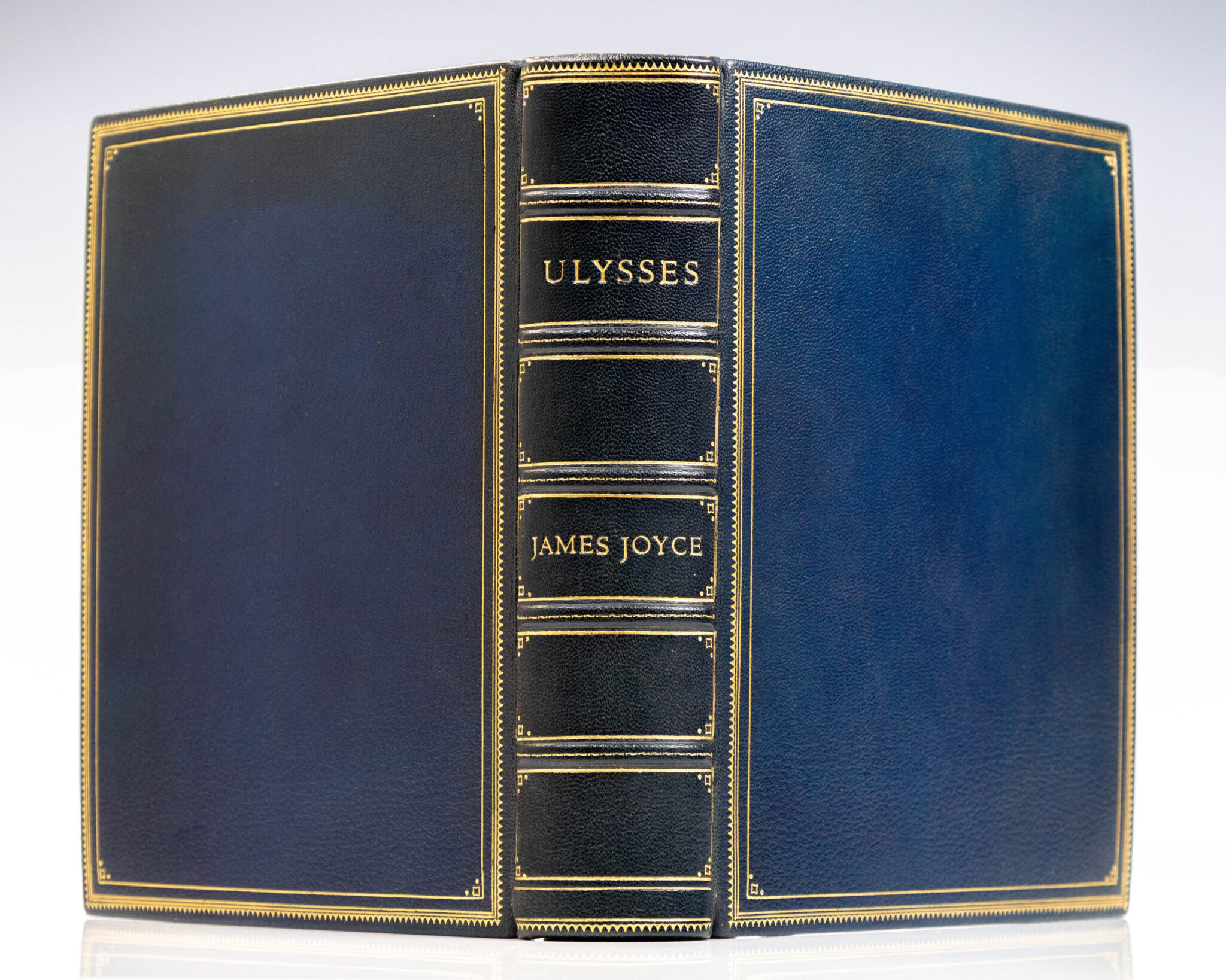 First edition, first printing of Joyce's masterpiece, one of 750 numbered copies printed on handmade paper from a total edition of 1000 copies, this is number 909. Thick quarto, bound full morocco by Baker Bindery with gilt titles and tooling to the spine in six compartments within raised gilt bands, triple gilt ruling to the front and rear panels, gilt turn-ins and wide gilt scrolled inner dentelles, marbled endpapers, top edge gilt. In near fine condition. An exceptional example.