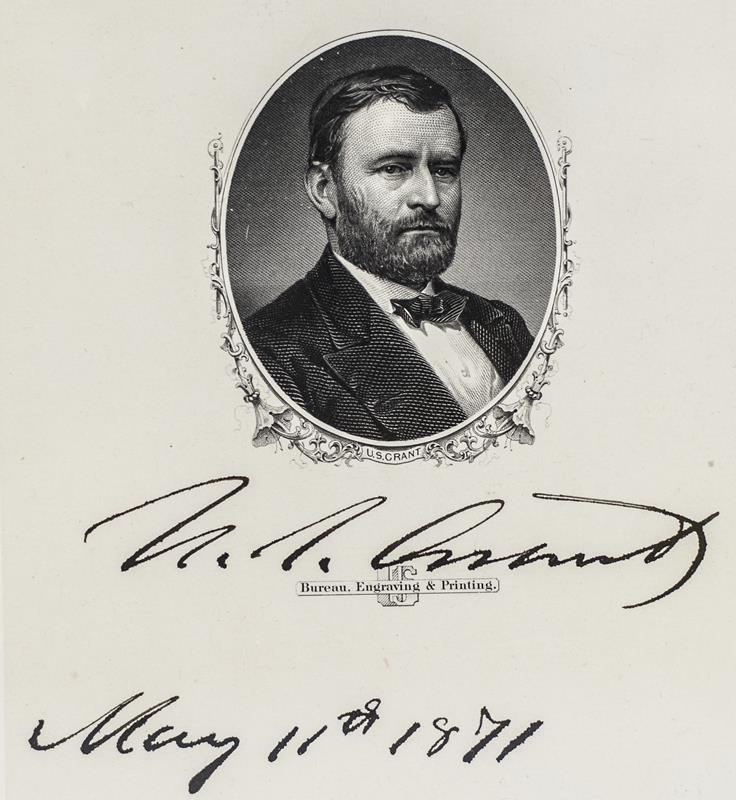 Engraving of President Ulysses S. Grant; Signed and dated by Him