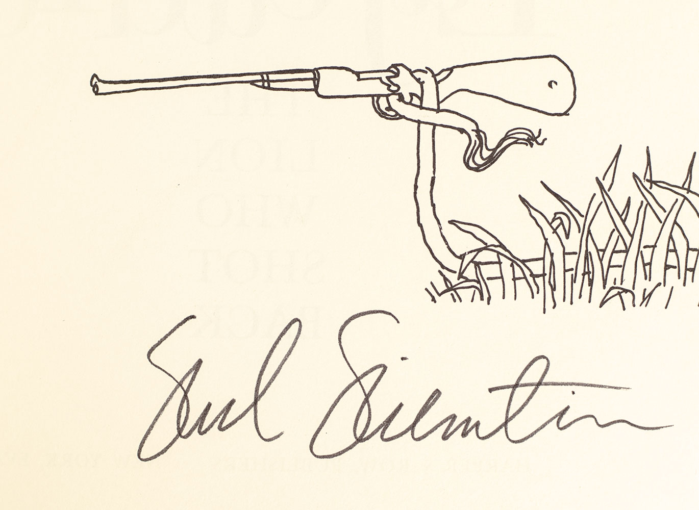 First Edition of Shel Silverstein's Uncle Shelby's Story of Lafcadio, The Lion Who Shot Back; Signed by Him with a Drawing