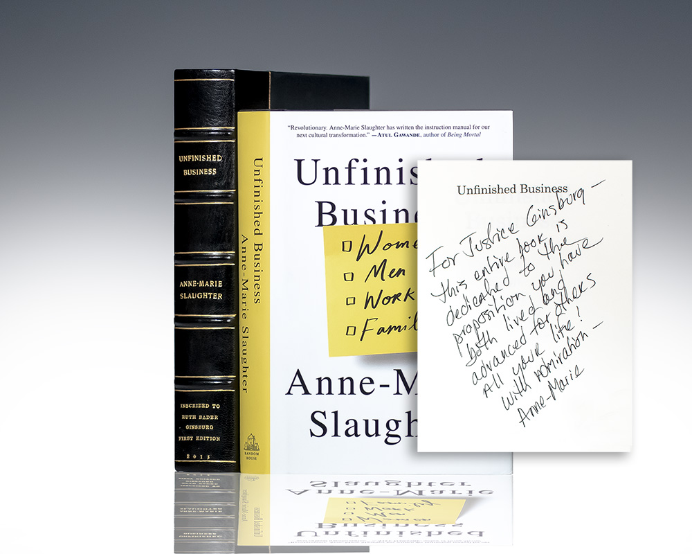 FROM THE LIBRARY OF JUSTICE RUTH BADER GINSBURG: FIRST EDITION OF UNFINISHED BUSINESS; INSCRIBED BY ANNE-MARIE SLAUGHTER TO RUTH BADER GINSBURG