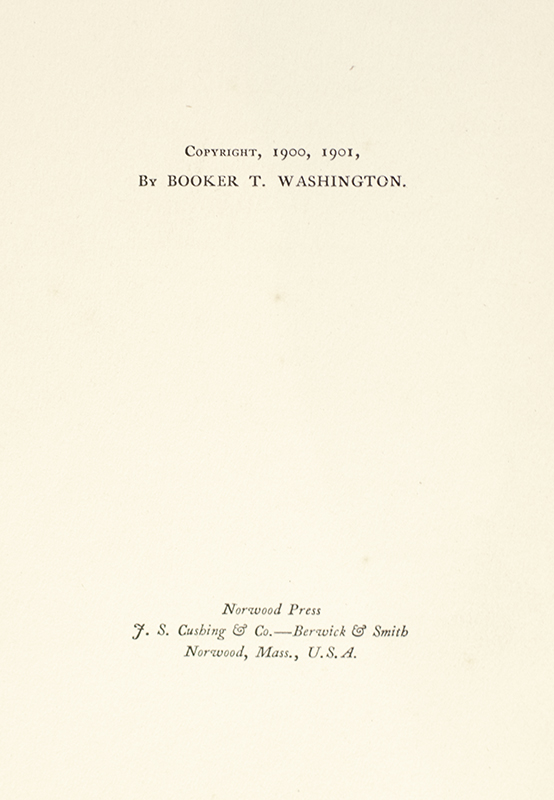 First edition of Booker T. Washington's landmark biography. Octavo, original cloth, illustrated. In near fine condition. An exceptional example.