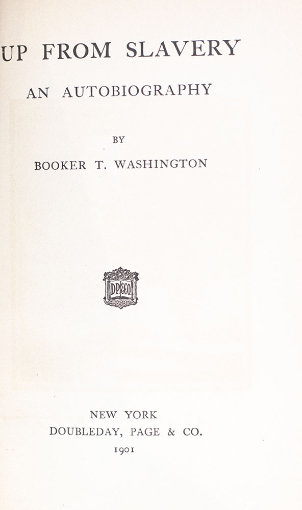 First edition of Booker T. Washington's landmark biography. Octavo, original cloth, illustrated. With a portion of a typed letter signed by Booker T. Washington tipped in to the pastedown. In near fine condition. A very nice example.