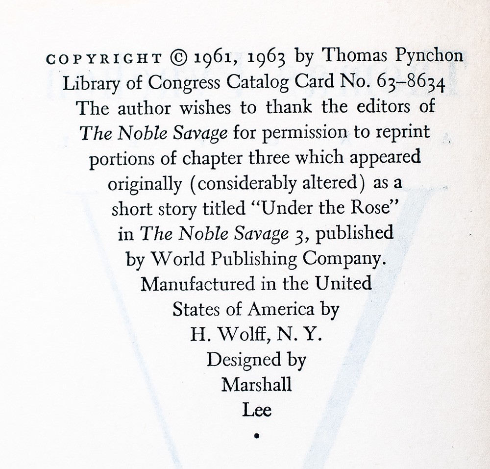 “Life's single lesson: that there is more accident to it than a man can ever admit to in a lifetime and stay sane": First Edition of Thomas Pynchon's First Book V.; Finely Bound by the Harcourt Bindery