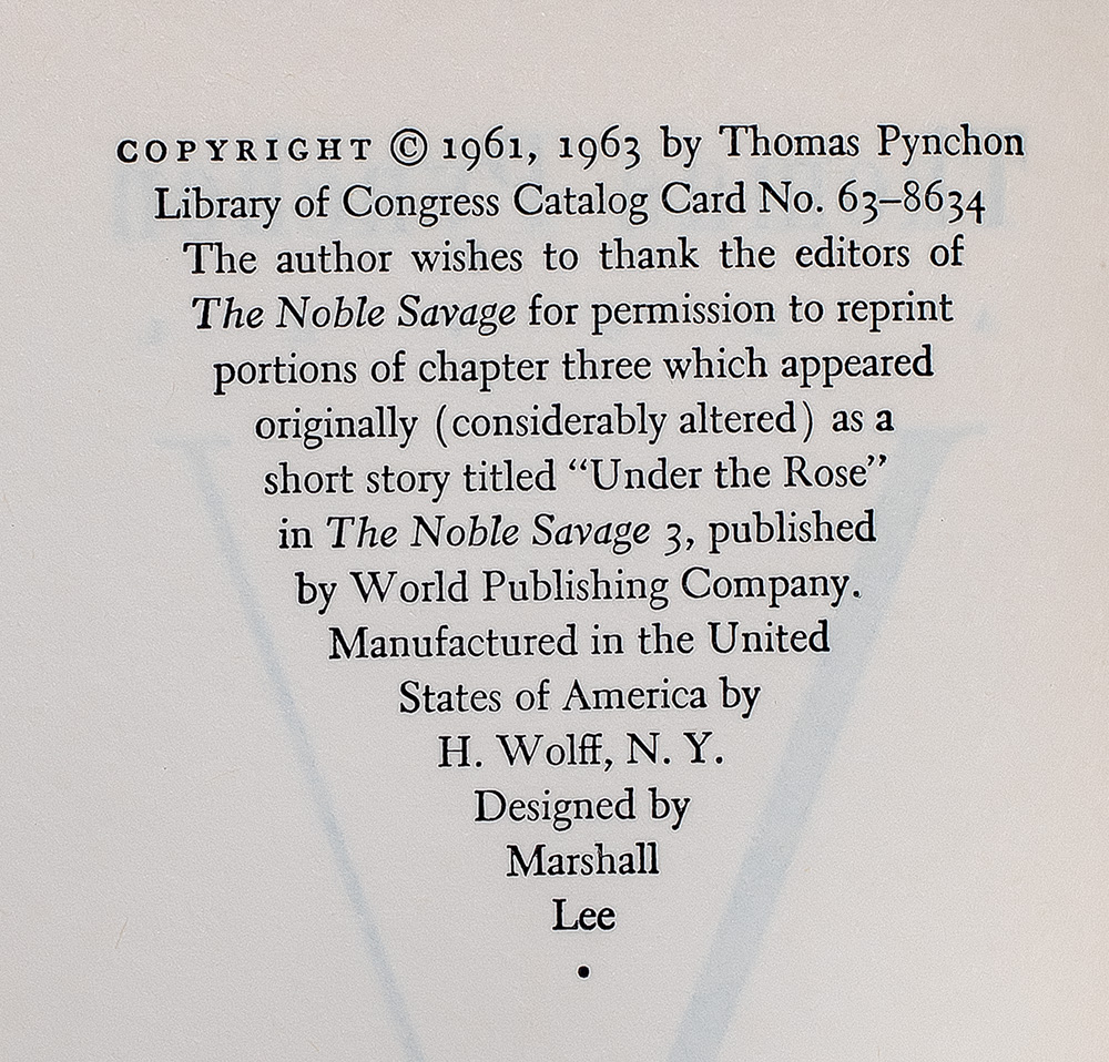 “Life's single lesson: that there is more accident to it than a man can ever admit to in a lifetime and stay sane": First Edition of Thomas Pynchon's First Book V.; Finely Bound by the Harcourt Bindery