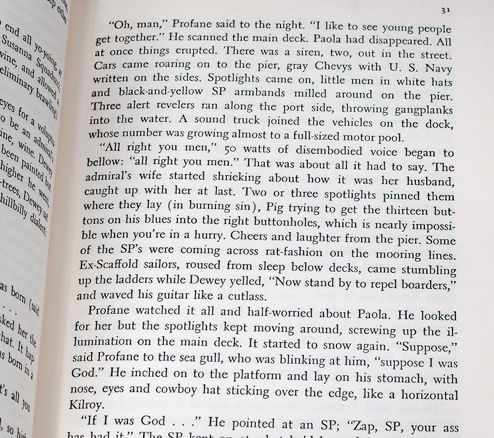 After earning his Bachelor’s Degree in English from Cornell University, Pynchon was employed as a technical writer for The Boeing Company in Seattle, Washington where he compiled safety articles and newsletters. His experiences at Boeing inspired his depiction of the Yoyodyne Corporation, the fictional defense contractor featured both in V. and The Crying of Lot 49. His debut novel, V. chronicles the exploits of discharged Navy sailor Benny Profane and his reconnection in New York with a group of pseudo-bohemians. Pynchon was critical of the 50s and 60s countercultural movements stating that they "placed too much emphasis on youth, including the eternal variety." V. won The Faulkner Foundation Award for Best First Novel of the Year upon publication in 1963. "V may well stand as one of the very best works of the century" (Atlantic Review).