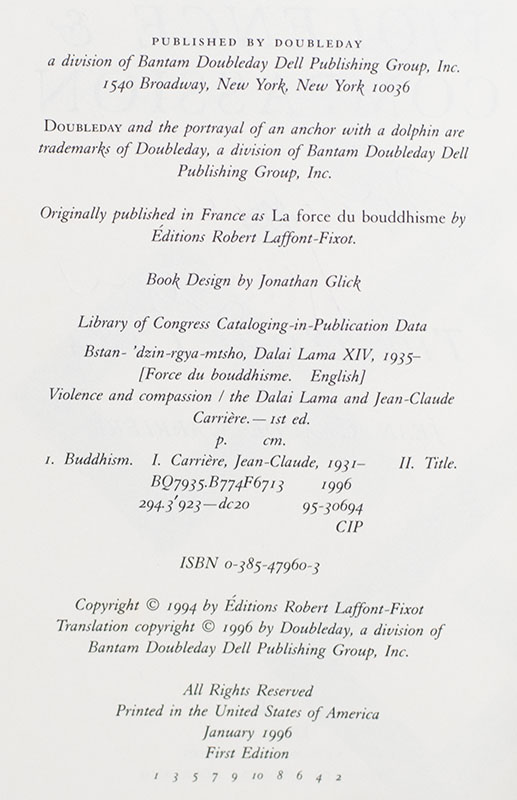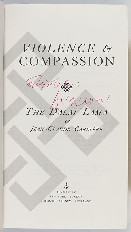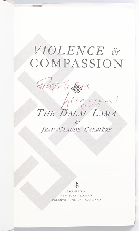 "Nothing exists separately. On the contrary, everything is connected to everything else": First edition of Violence & Compassion; signed by His Holiness The Dalai Lama